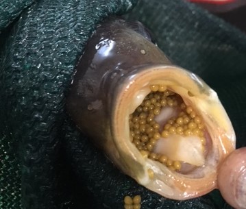 Eggs in the mouth of a female tilapia